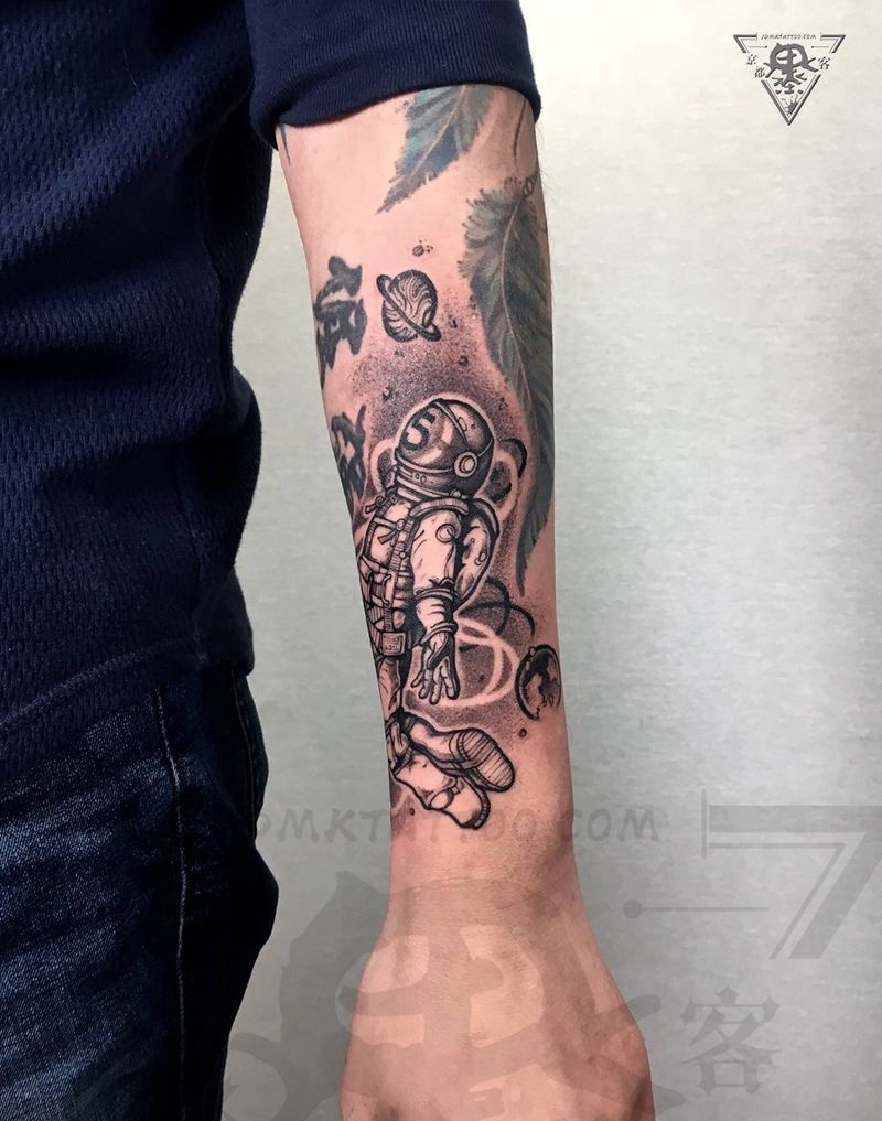 当前位置: 首页 >北京市纹身店-京都墨客刺青纹身图案>纹身/刺青/宇航员纹身图片_手臂点刺New School宇航员纹身图案