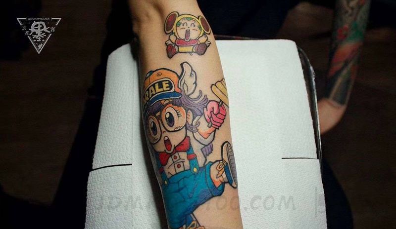 当前位置: 首页 >北京市纹身店-京都墨客刺青纹身图案>纹身/刺青纹身图片_手臂New School水彩卡通动漫纹身图案