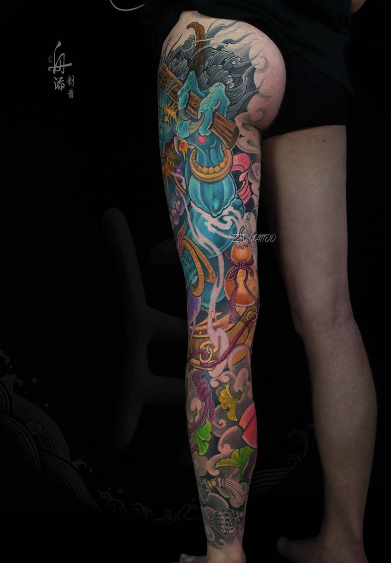 • T网红王老大花腿龙纹身图片_腿部新传统纹身图案