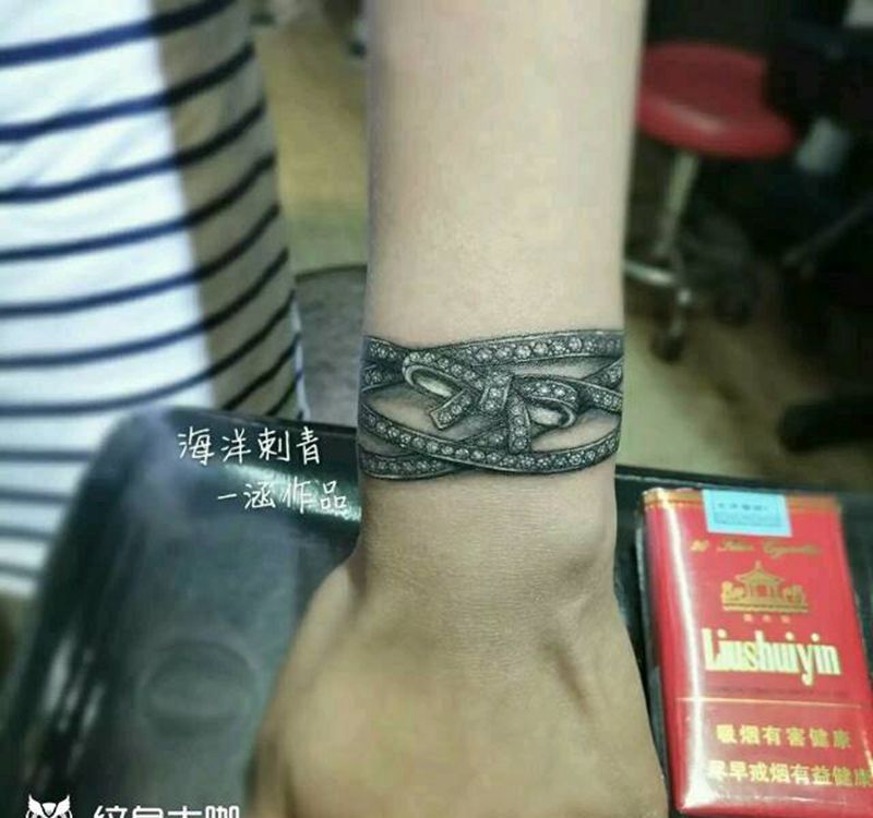 钻石手环纹身图片_手臂手部欧美清新写实静物原创成品纹身图案