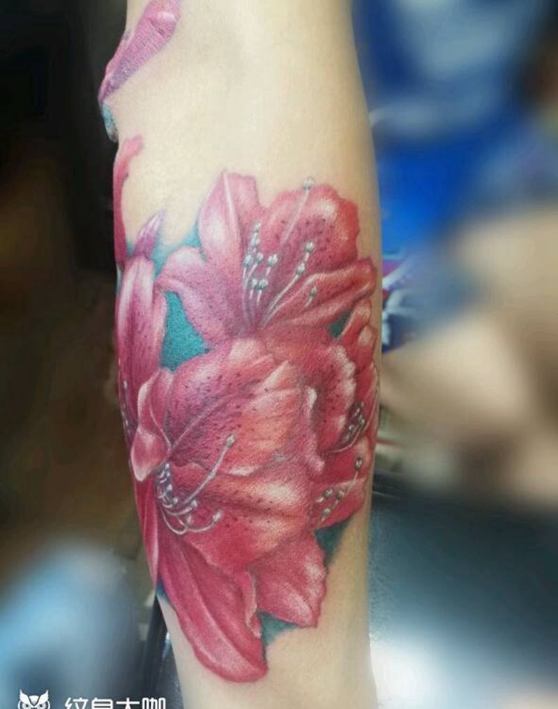 索玛花纹身图片_手臂欧美写实植物原创彩色彩色花成品纹身图案