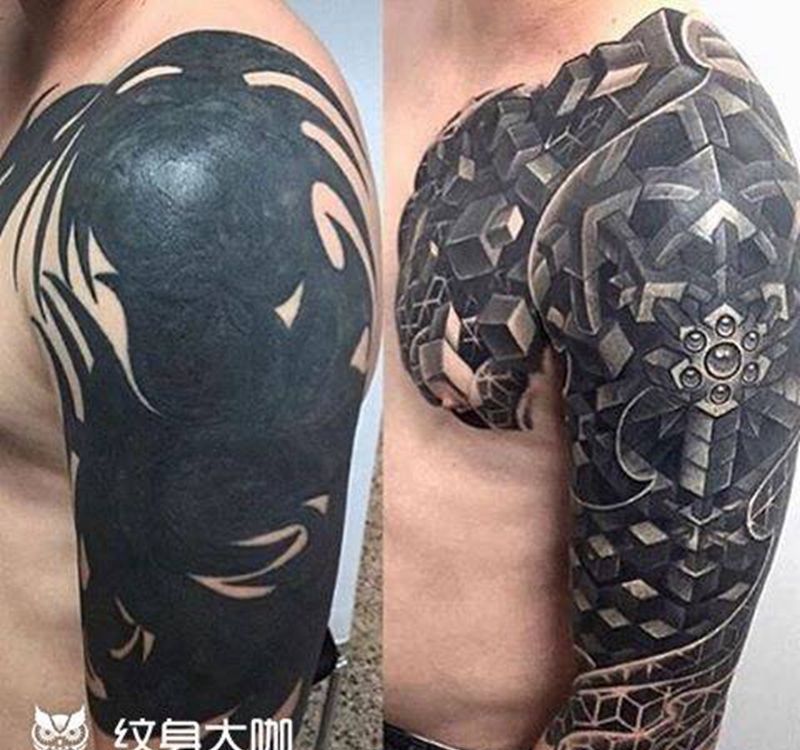 黑臂也能拯救纹身图片_成品手臂欧美几何纹身图案