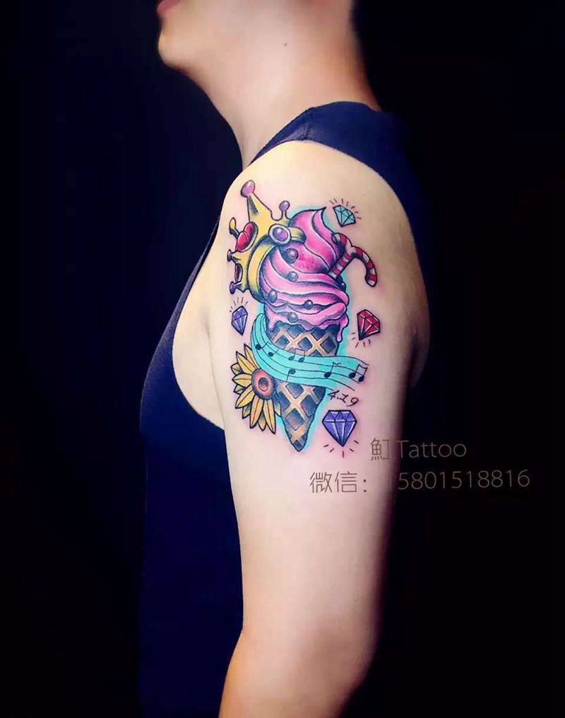 有爱的冰激凌纹身图片_成品手臂欧美原创手稿清新纹身图案