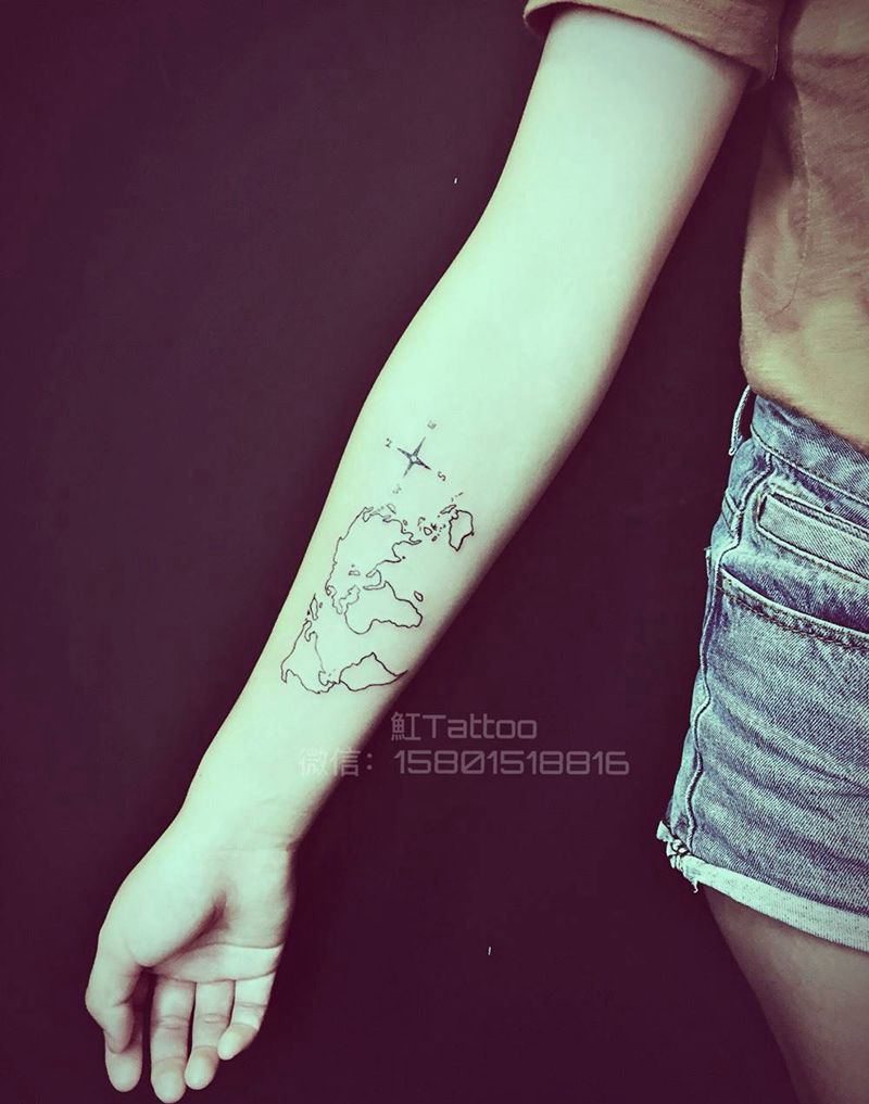 当前位置: 首页 >北京市纹身店-魟Tattoo-纹身设计工作室纹身图案>世界地图纹身图片_成品手臂清新纹身图案