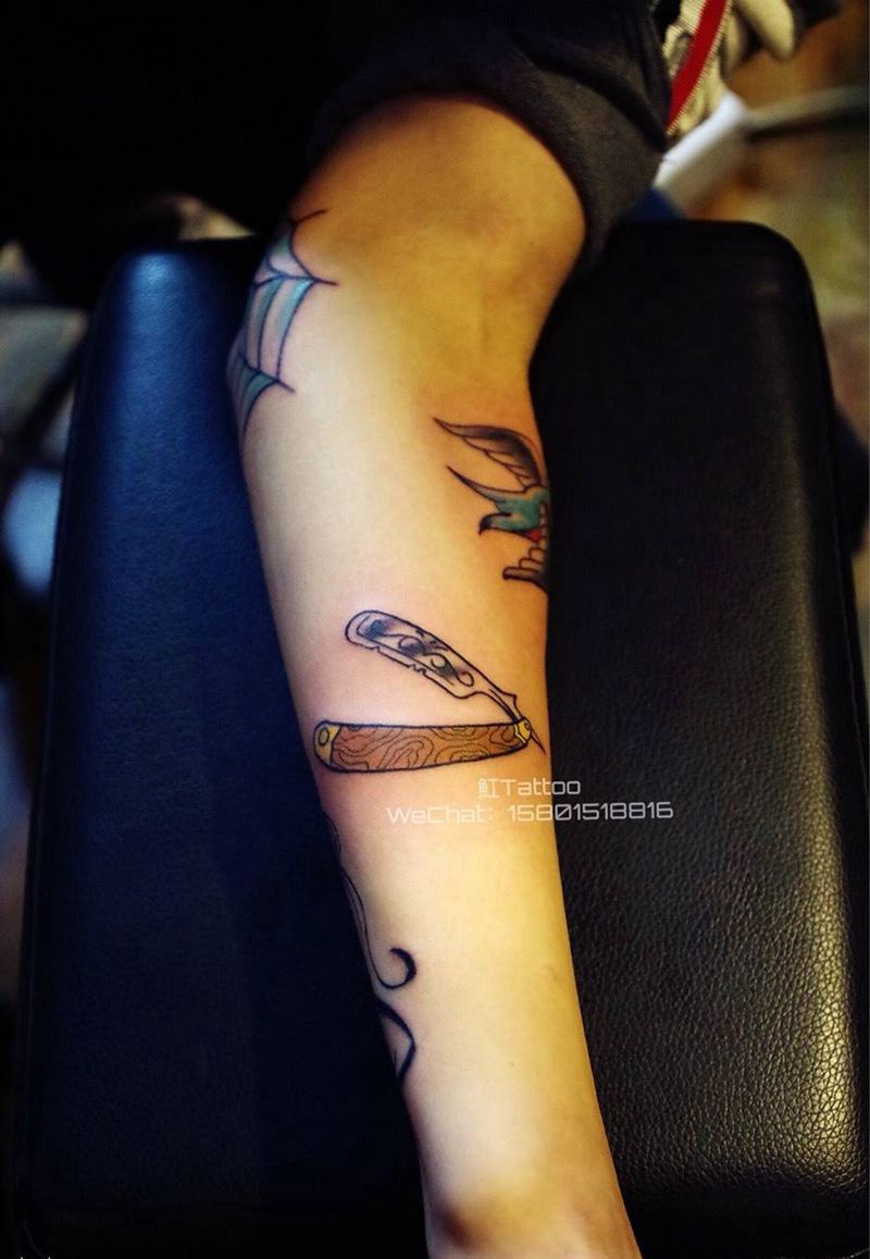 当前位置: 首页 >北京市纹身店-魟Tattoo-纹身设计工作室纹身图案>理发师&剃刀纹身图片_成品手臂欧美人物静物纹身图案