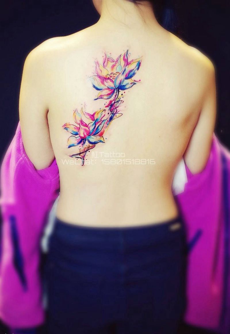 疤痕遮盖纹身图片_成品手稿背部欧美清新植物原创纹身图案