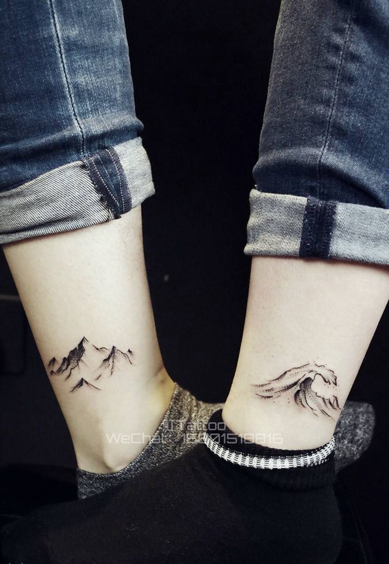 情侣图【海浪+山{纹身图片_成品腿部脚部清新静物纹身图案