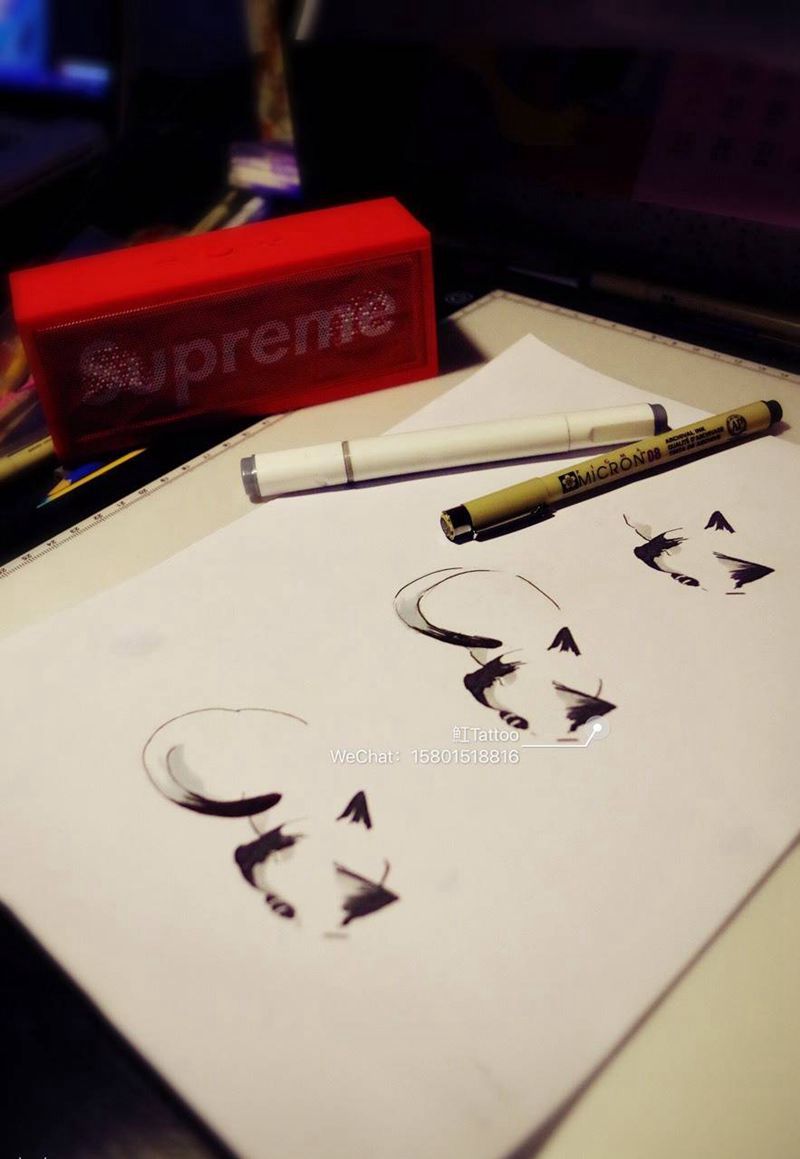 原创【猫】手稿纹身图片_手稿写实清新欧美原创动物纹身图案