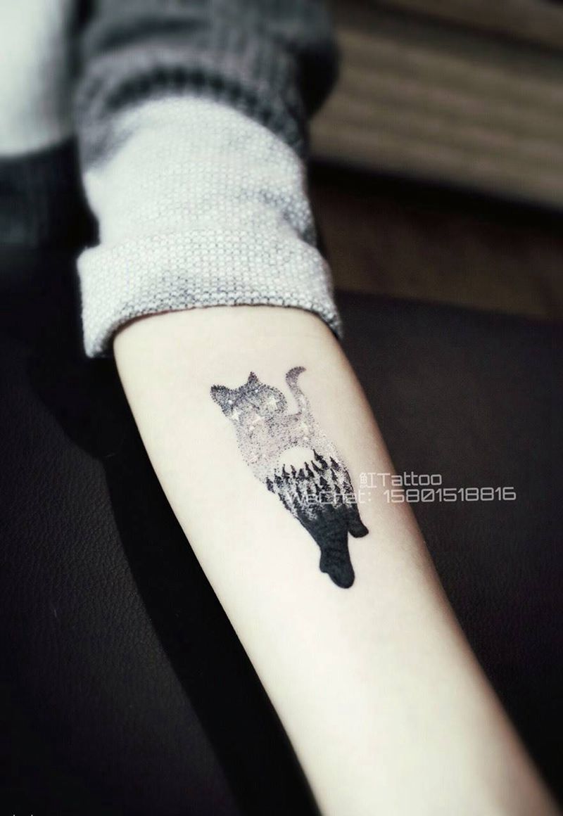 【猫】纹身图片_成品手臂清新动物纹身图案