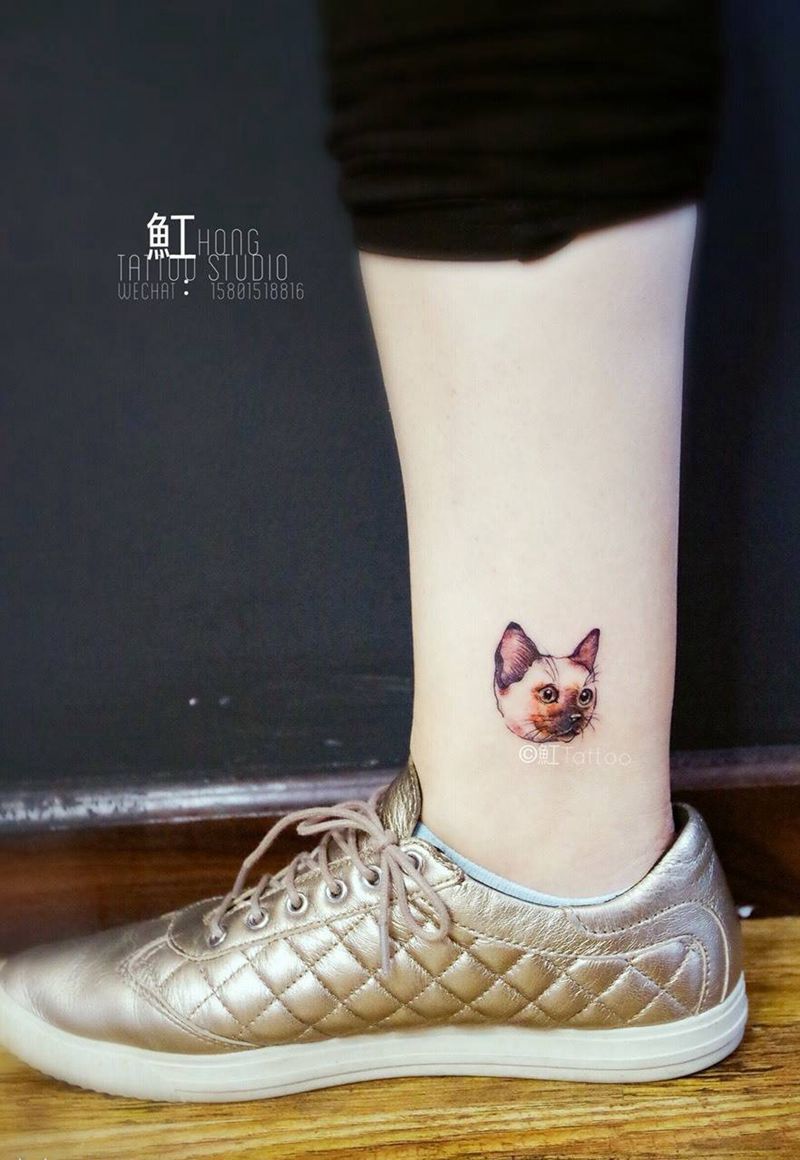 当前位置: 首页 >北京市纹身店-魟Tattoo-纹身设计工作室纹身图案>脚踝小猫头纹身图片_成品脚部清新动物纹身图案