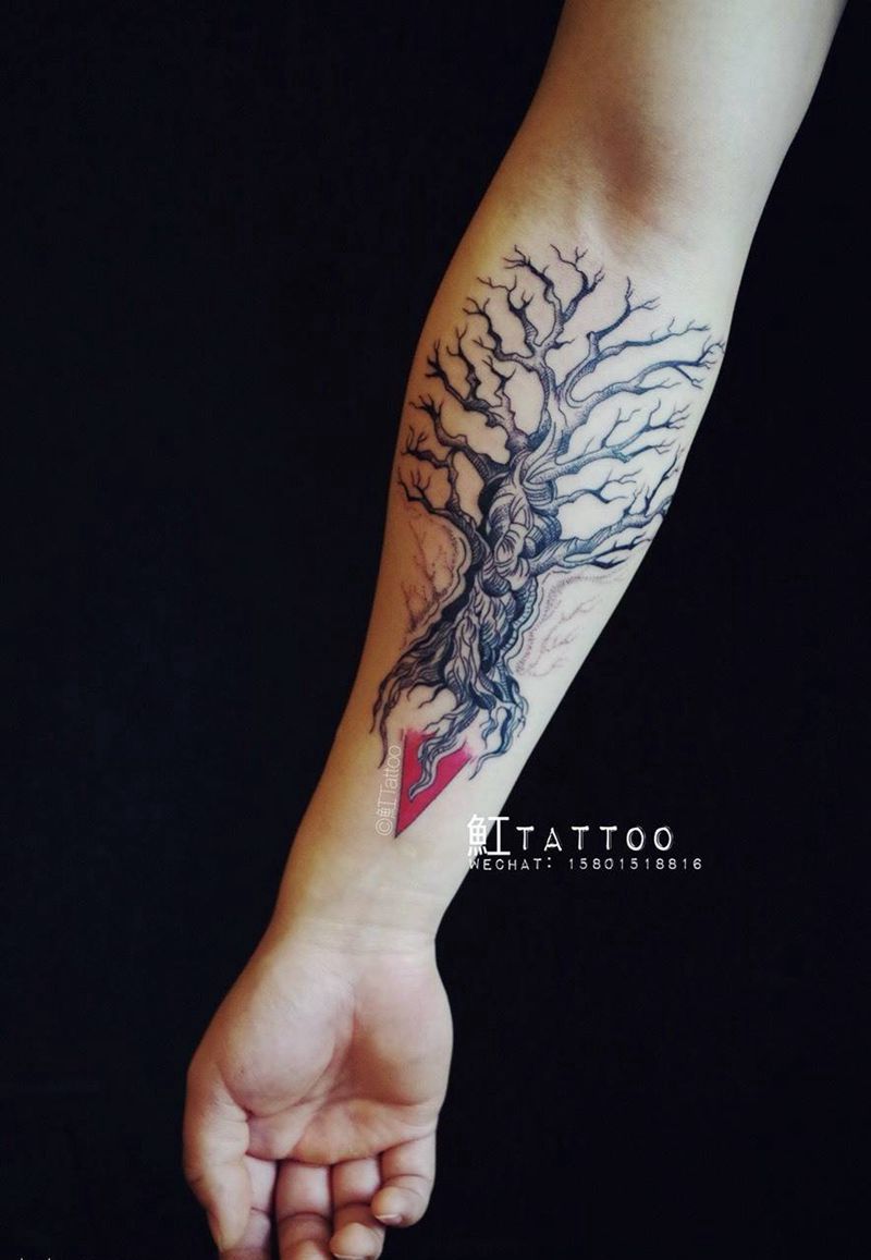 树-原创设计纹身图片_成品手稿手臂写实清新欧美原创几何植物纹身图案