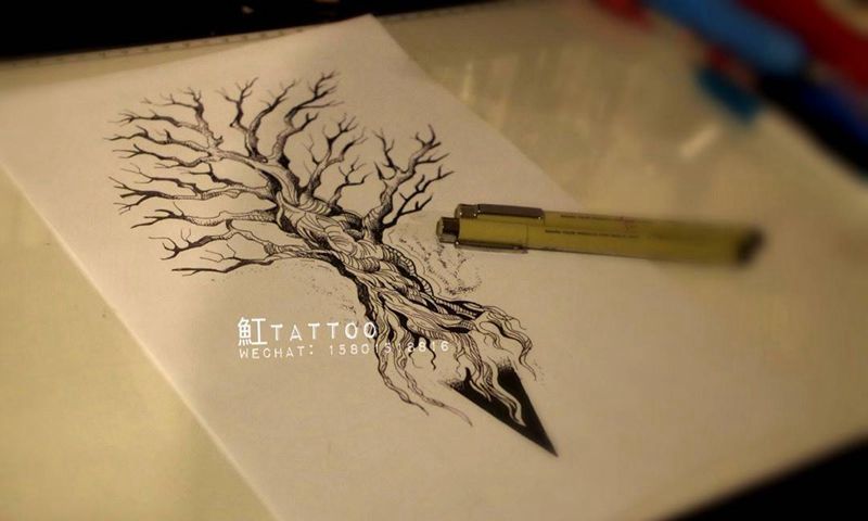 树-原创设计纹身图片_成品手稿手臂写实清新欧美原创几何植物纹身图案