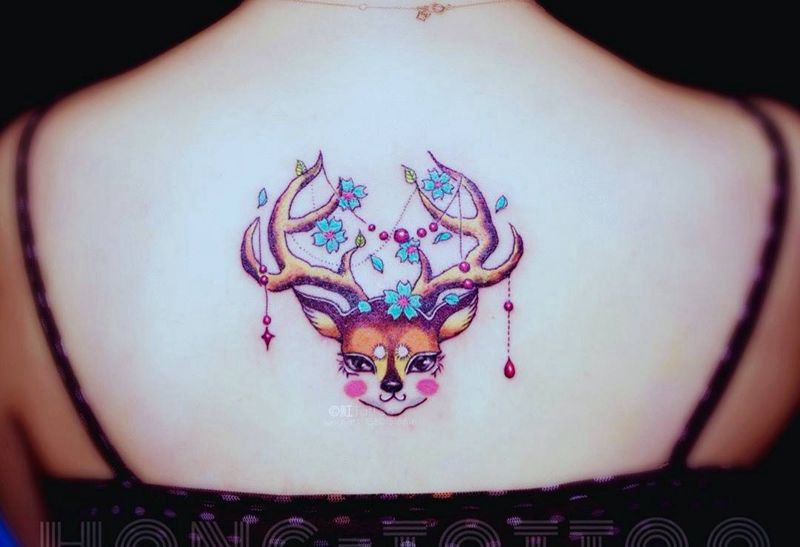 当前位置: 首页 >北京市纹身店-魟Tattoo-纹身设计工作室纹身图案>鹿纹身图片_成品手稿背部清新欧美原创动物植物纹身图案