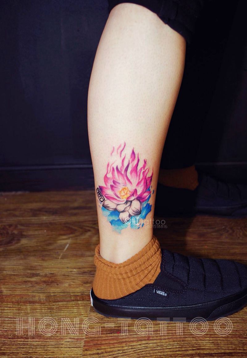 当前位置: 首页 >北京市纹身店-魟Tattoo-纹身设计工作室纹身图案>水彩荷花纹身图片_成品腿部脚部清新国画原创植物字符欧美纹身图案