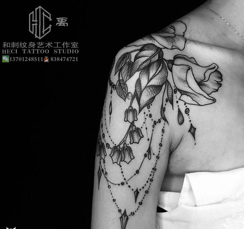 花纹身图片_成品手臂肩部清新欧美植物花纹身图案