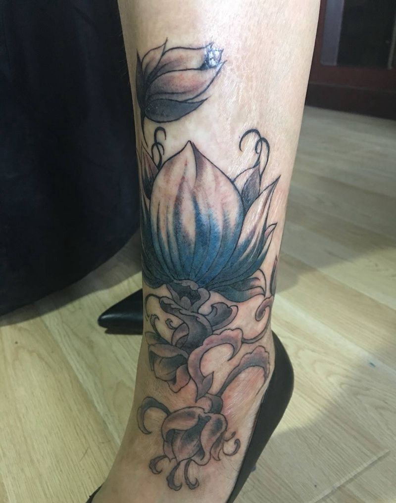 • T网红王老大花腿龙纹身图片_腿部新传统纹身图案