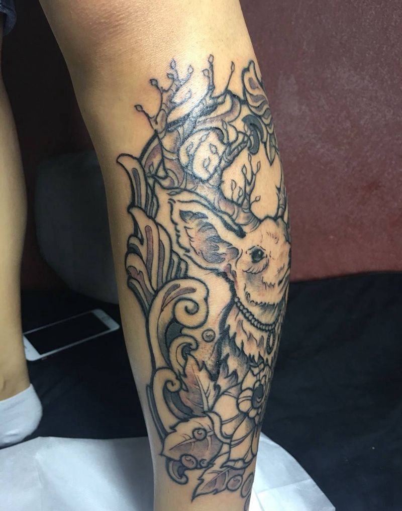 • T网红王老大花腿龙纹身图片_腿部新传统纹身图案