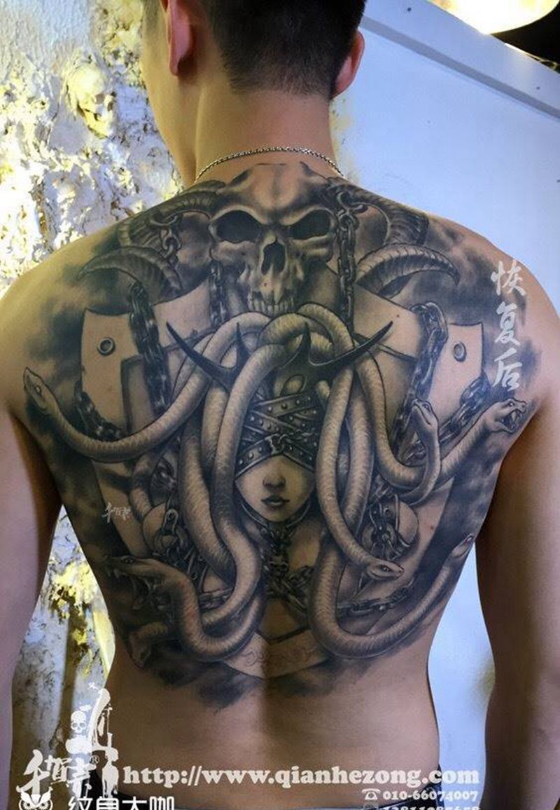 黑灰满背纹身图案