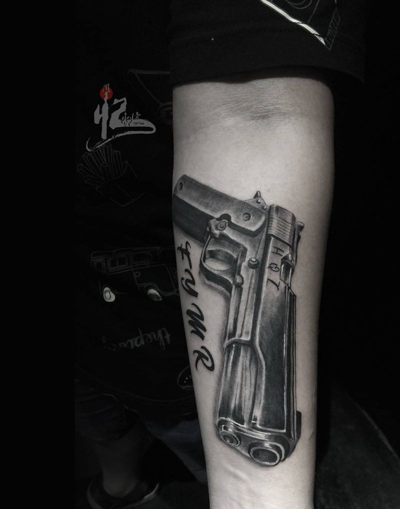 当前位置: 首页 >北京市纹身店-周忆刺青(三里屯)纹身图案>小臂手枪纹身图片_