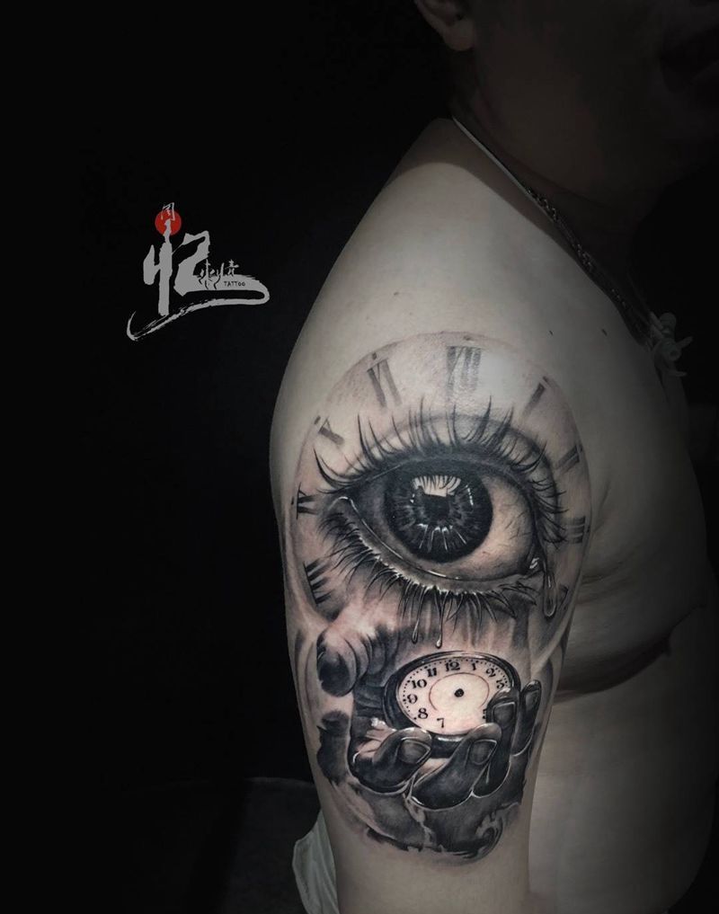 当前位置: 首页 >北京市纹身店-周忆刺青(三里屯)纹身图案>大臂黑灰写实眼睛纹身图片_
