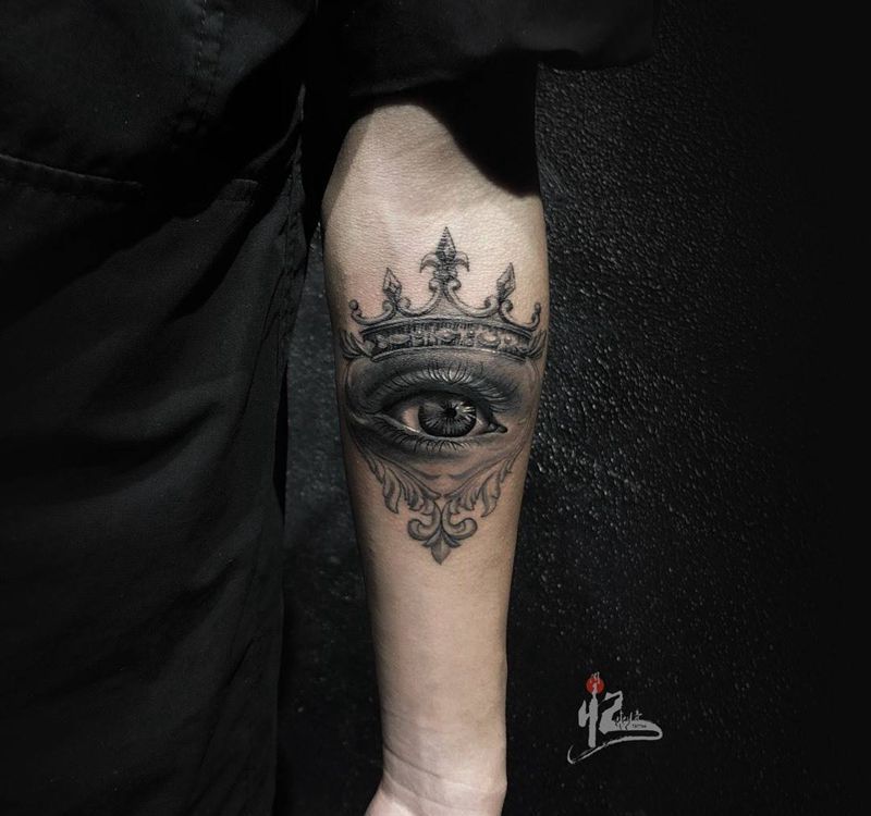 当前位置: 首页 >北京市纹身店-周忆刺青(三里屯)纹身图案>小臂皇冠眼睛纹身图片_