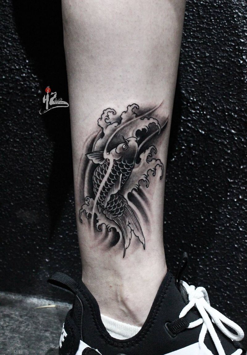 当前位置: 首页 >北京市纹身店-周忆刺青(三里屯)纹身图案>小腿鲤鱼纹身图片_