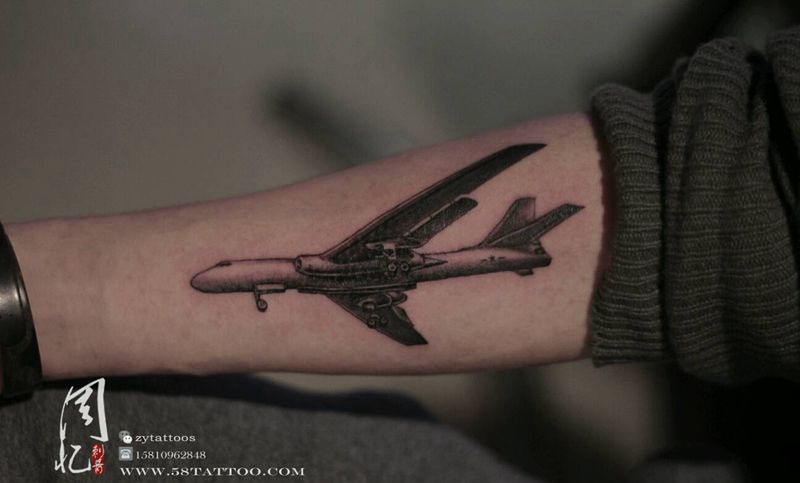 灰机纹身图片_手臂欧美静物周忆刺青成品纹身图案