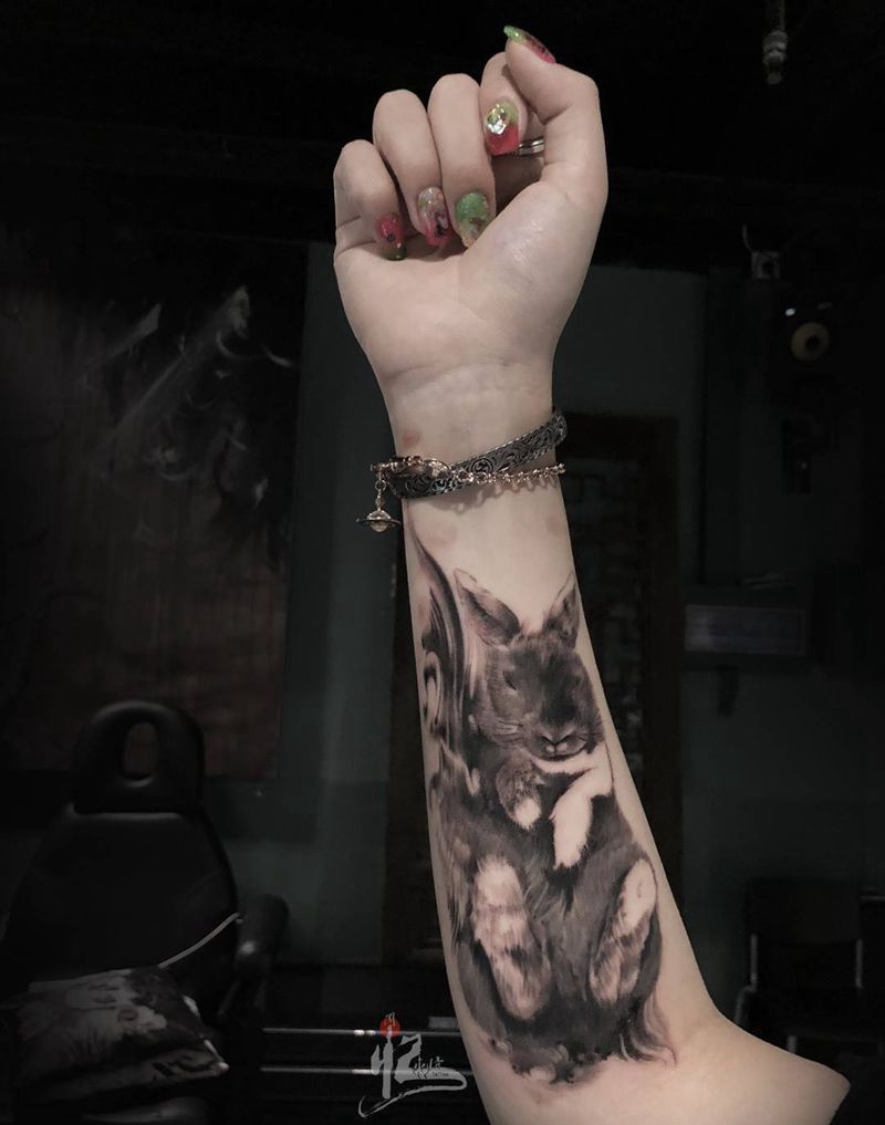 小臂写实兔子纹身图片_