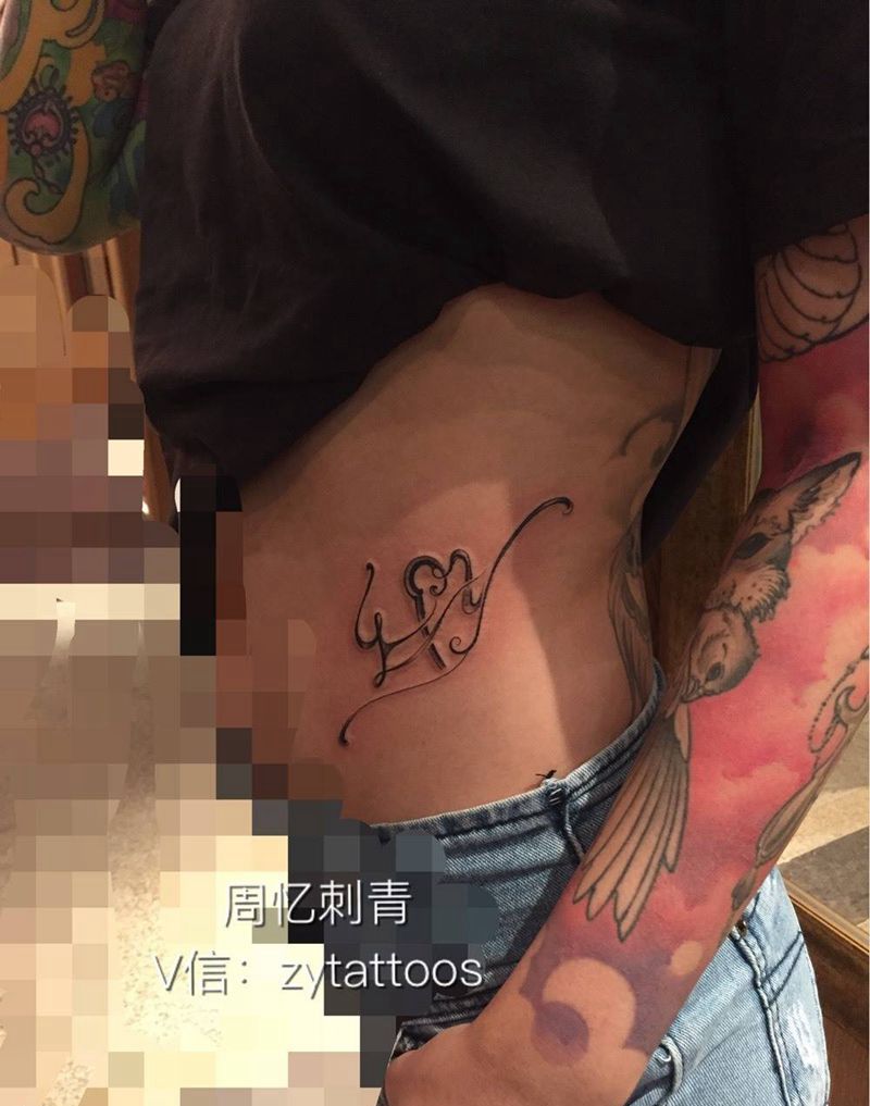 • T关于私处得爱!纹身图片_成品腹部清新字符图腾纹身图案