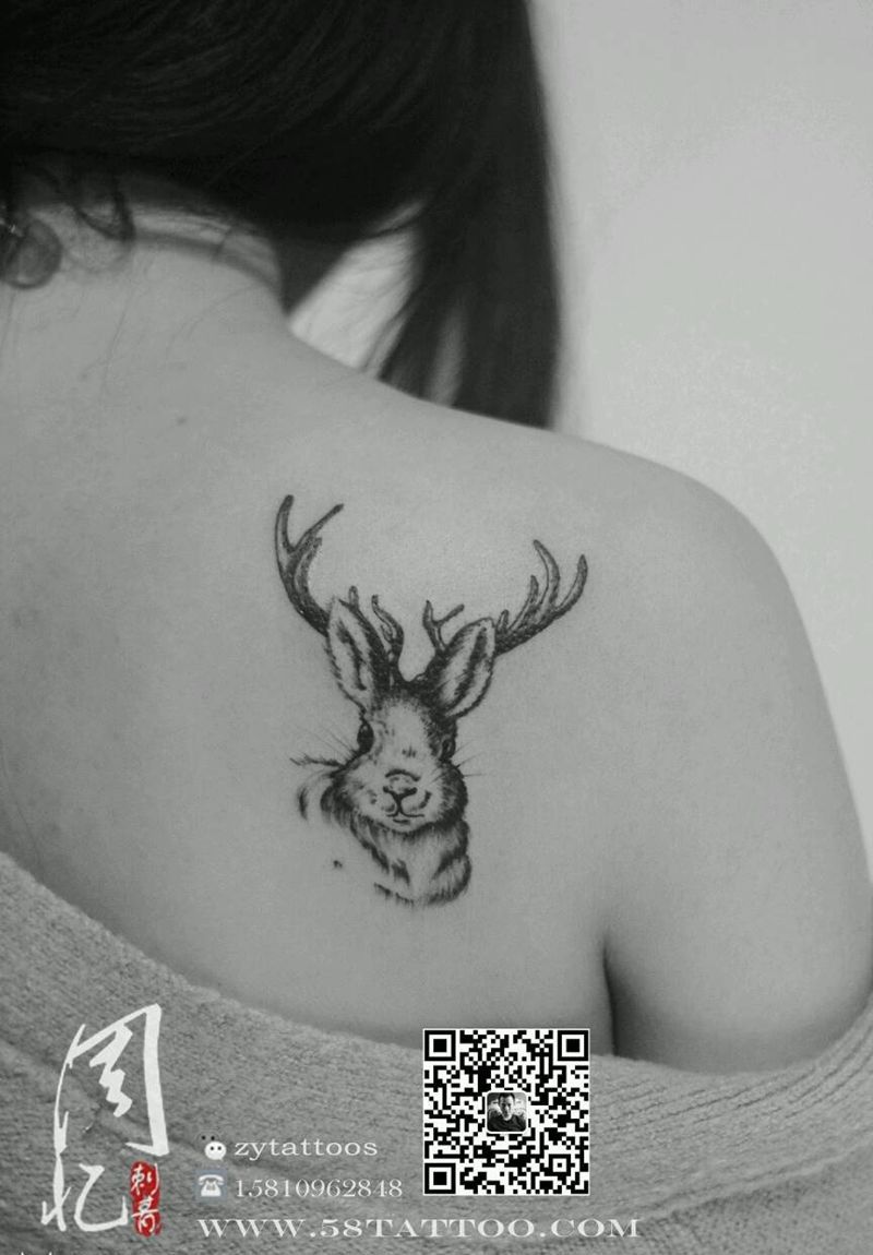 鹿角兔纹身图片_肩部清新动物周忆刺青成品纹身图案