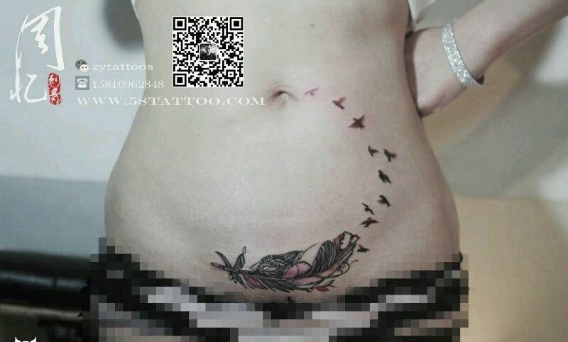 疤痕遮盖纹身图片_腹部清新动物周忆刺青成品纹身图案