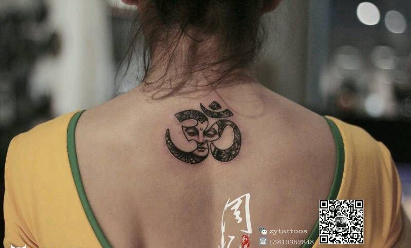 梵文佛纹身图片_颈部传统字符人物周忆刺青成品纹身图案