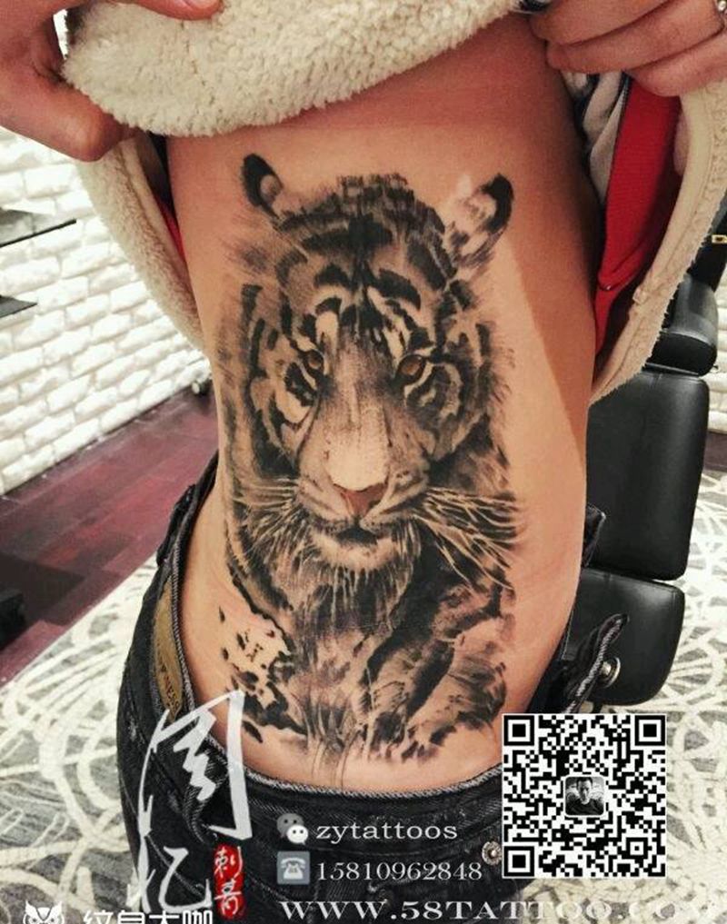 老虎纹身图片_腰部欧美动物周忆刺青成品纹身图案