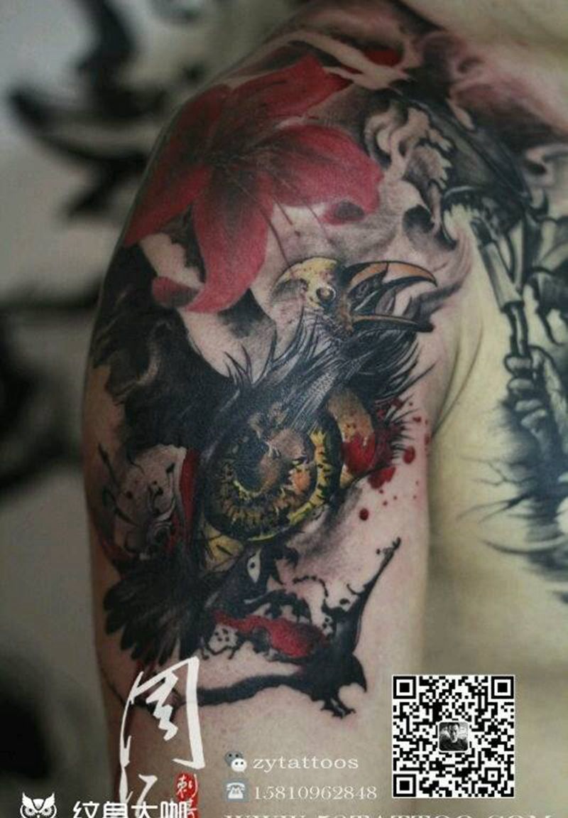 当前位置: 首页 >北京市纹身店-周忆刺青(三里屯)纹身图案>乌鸦眼睛纹身图片_手臂欧美动物周忆刺青成品纹身图案
