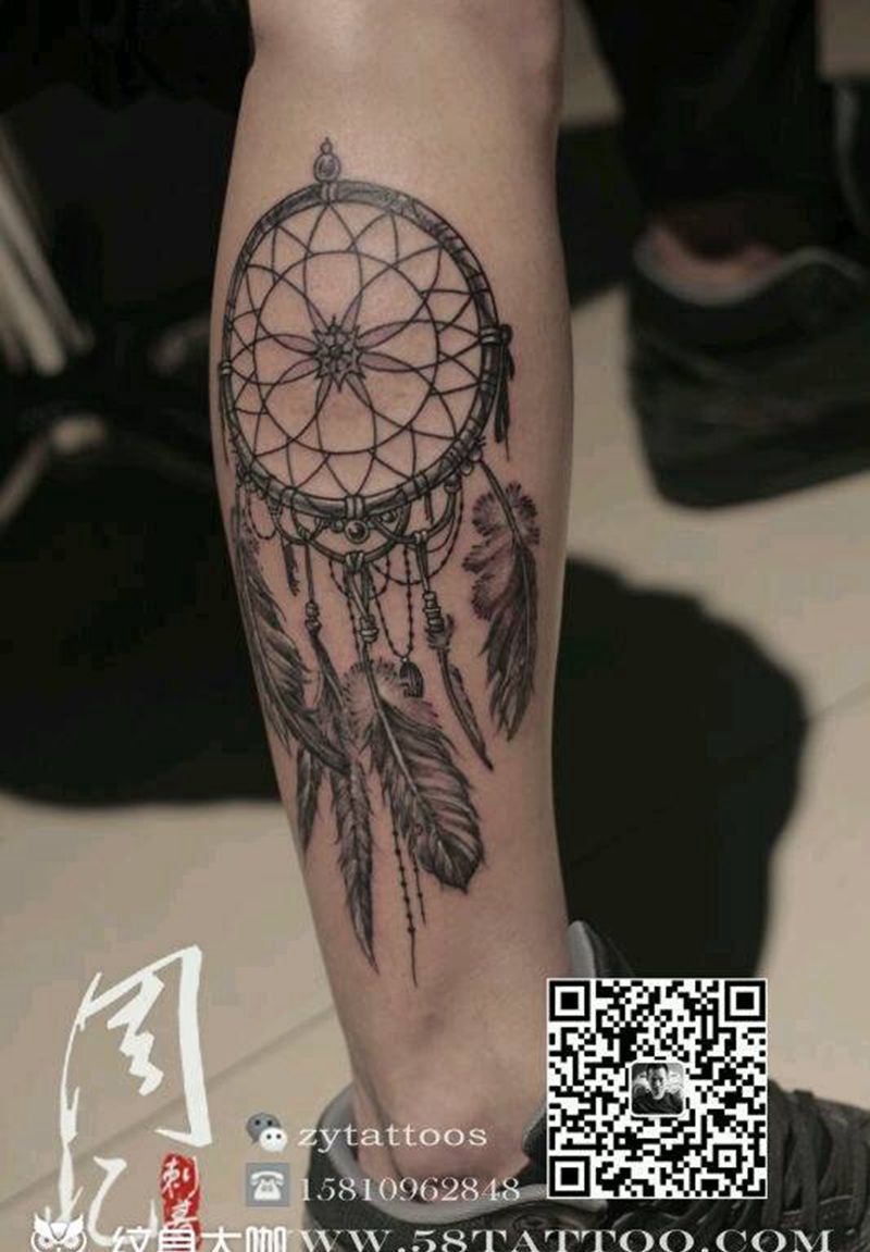 捕梦网纹身图片_腿部欧美静物周忆刺青成品纹身图案