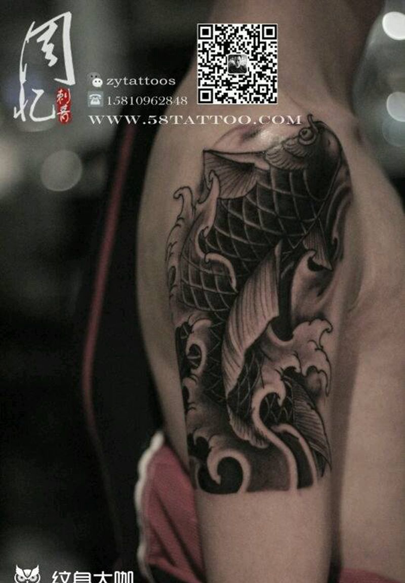 传统鲤鱼纹身图片_手臂传统动物周忆刺青成品纹身图案
