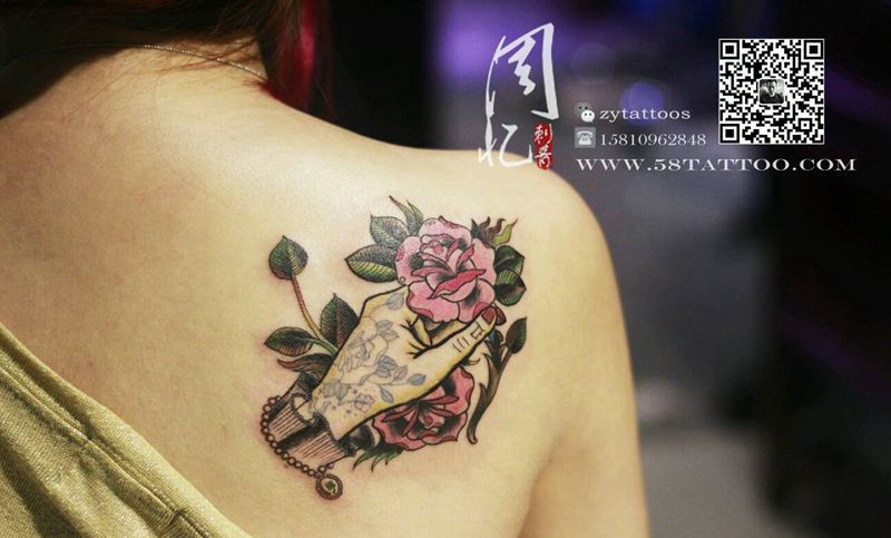 当前位置: 首页 >北京市纹身店-周忆刺青(三里屯)纹身图案>后肩玫瑰纹身图片_