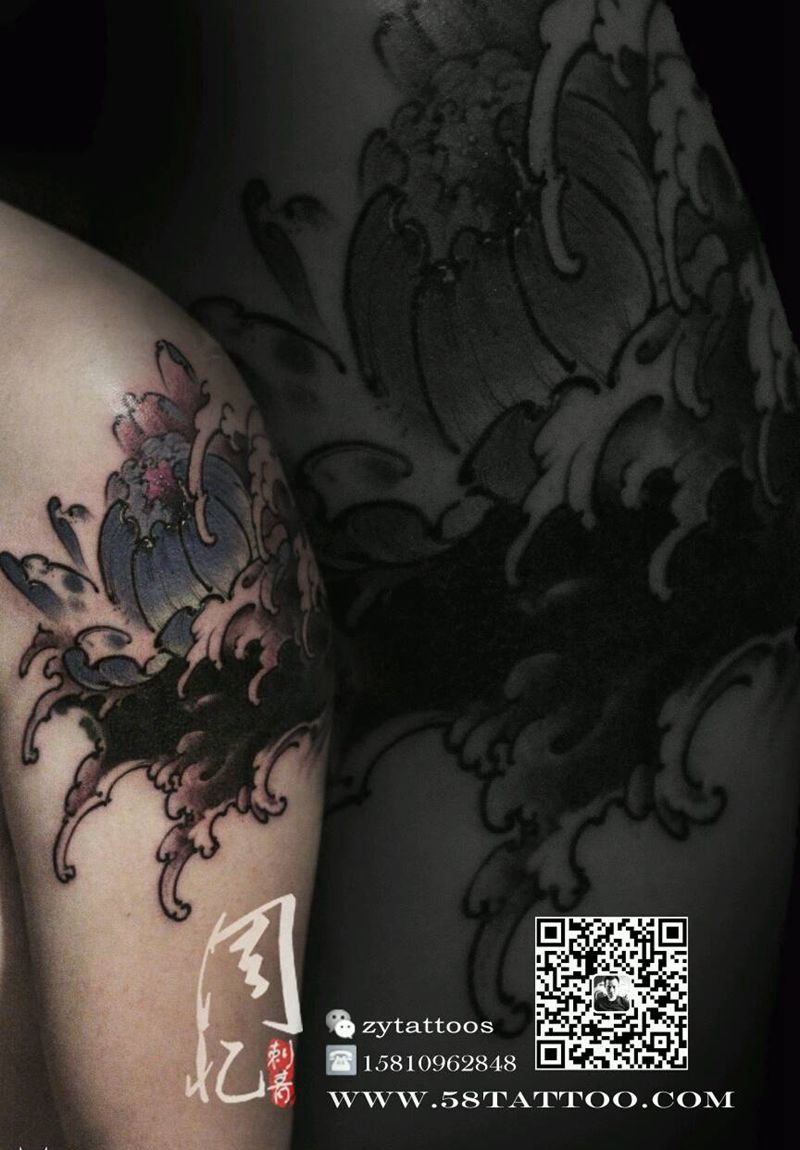 当前位置: 首页 >北京市纹身店-周忆刺青(三里屯)纹身图案>大臂莲花遮盖图腾纹身图片_