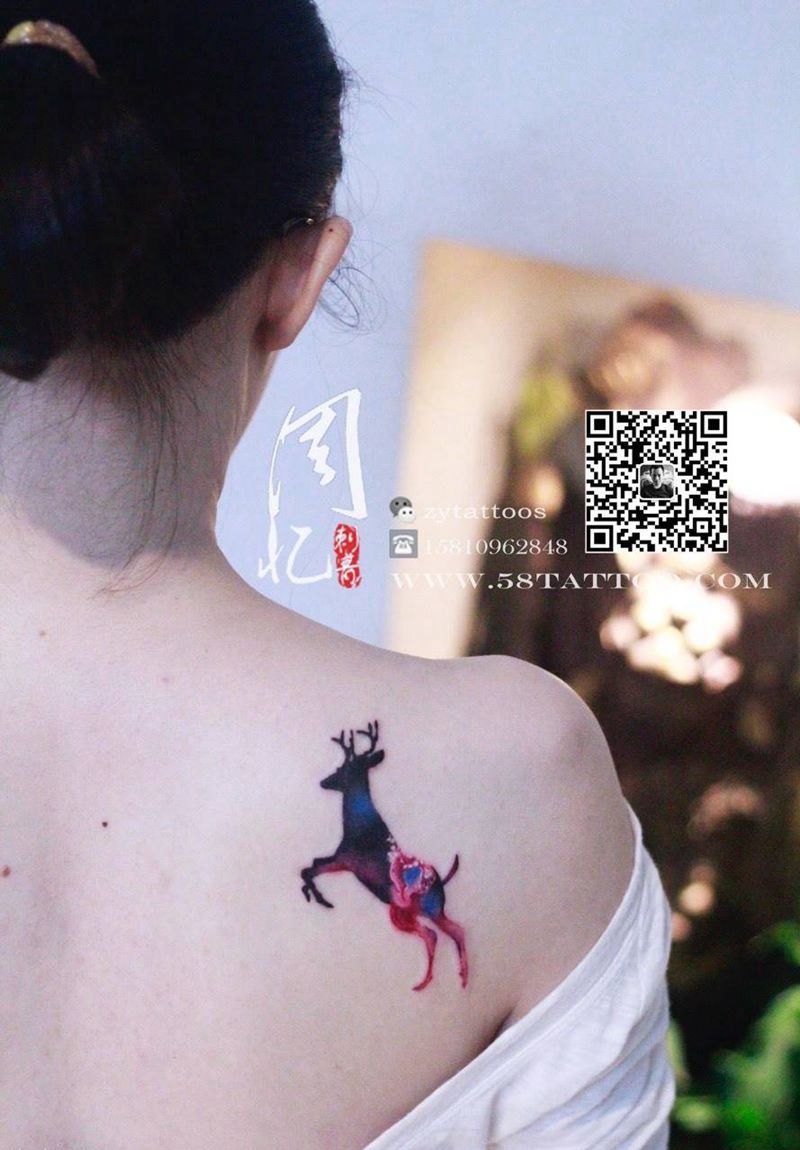 当前位置: 首页 >北京市纹身店-周忆刺青(三里屯)纹身图案>后肩鹿纹身图片_
