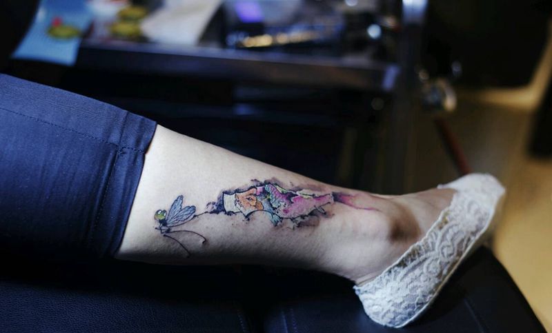 当前位置: 首页 >北京市纹身店-周忆刺青(三里屯)纹身图案>小腿鱼旗纹身图片_