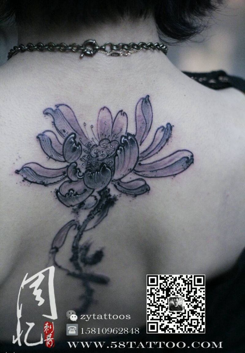 当前位置: 首页 >北京市纹身店-周忆刺青(三里屯)纹身图案>后背荷花纹身图片_