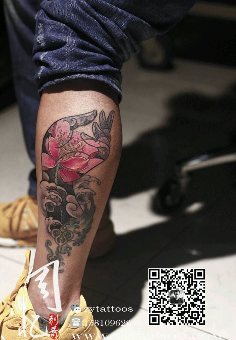 当前位置: 首页 >北京市纹身店-周忆刺青(三里屯)纹身图案>小腿佛手莲花纹身图片_