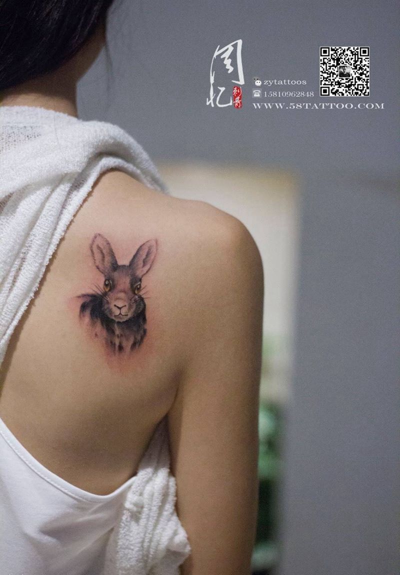 当前位置: 首页 >北京市纹身店-周忆刺青(三里屯)纹身图案>后肩手绘兔子纹身图片_