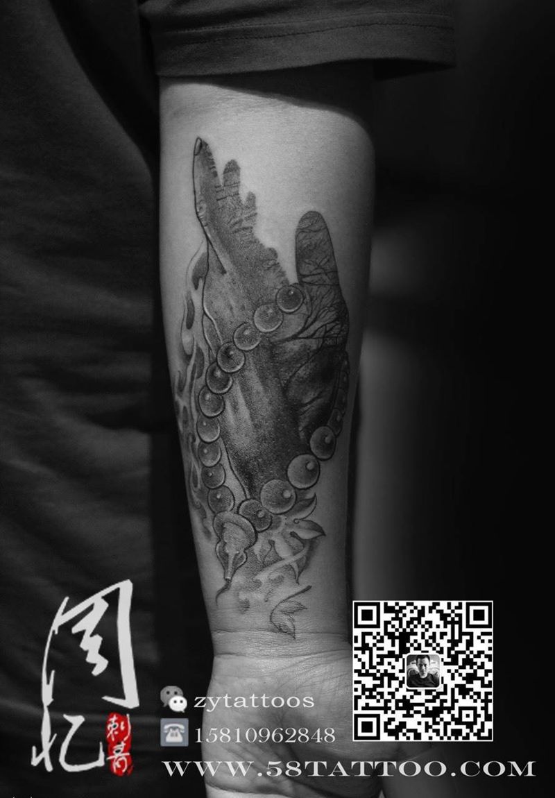 小臂手握佛珠纹身图片_
