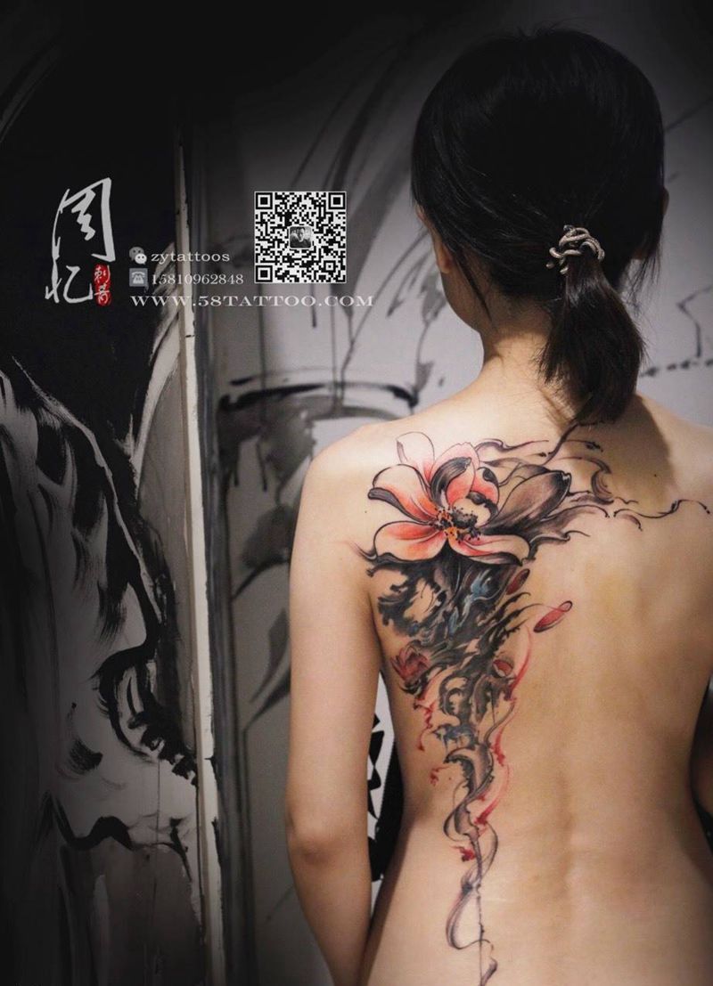 当前位置: 首页 >北京市纹身店-周忆刺青(三里屯)纹身图案>后背 荷花 写意抽象风格纹身图片_