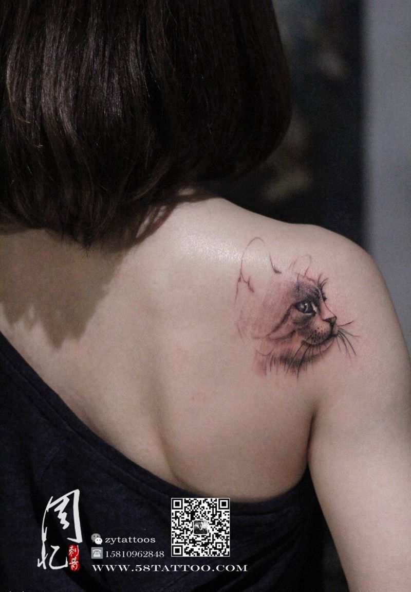 当前位置: 首页 >北京市纹身店-周忆刺青(三里屯)纹身图案>后肩欧美风格猫纹身图片_