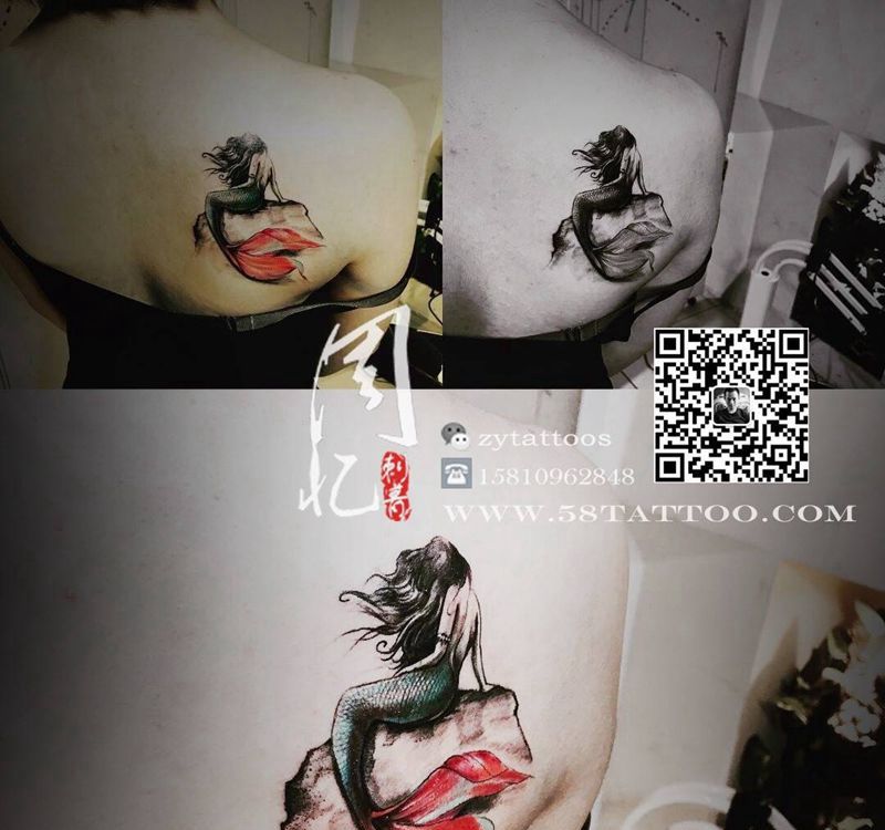 当前位置: 首页 >北京市纹身店-周忆刺青(三里屯)纹身图案>后肩美人鱼纹身图片_