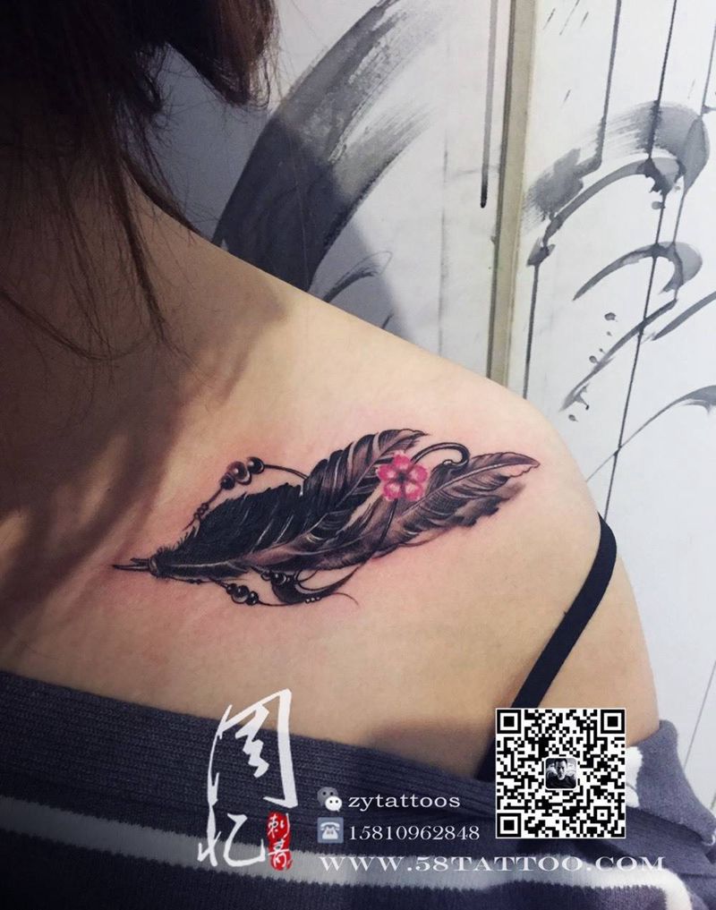 锁骨羽毛纹身图片_