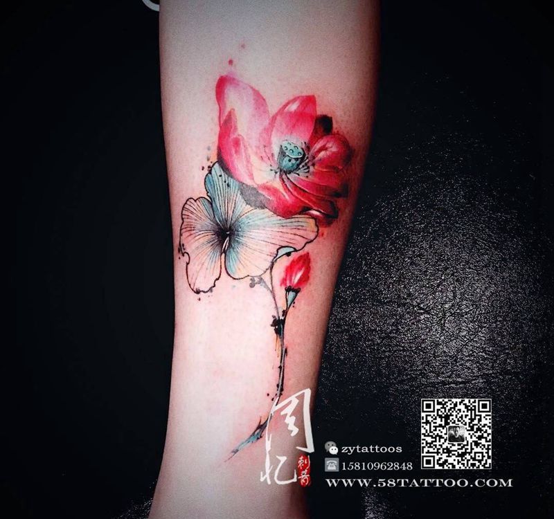 当前位置: 首页 >北京市纹身店-周忆刺青(三里屯)纹身图案>小腿水墨莲花纹身图片_