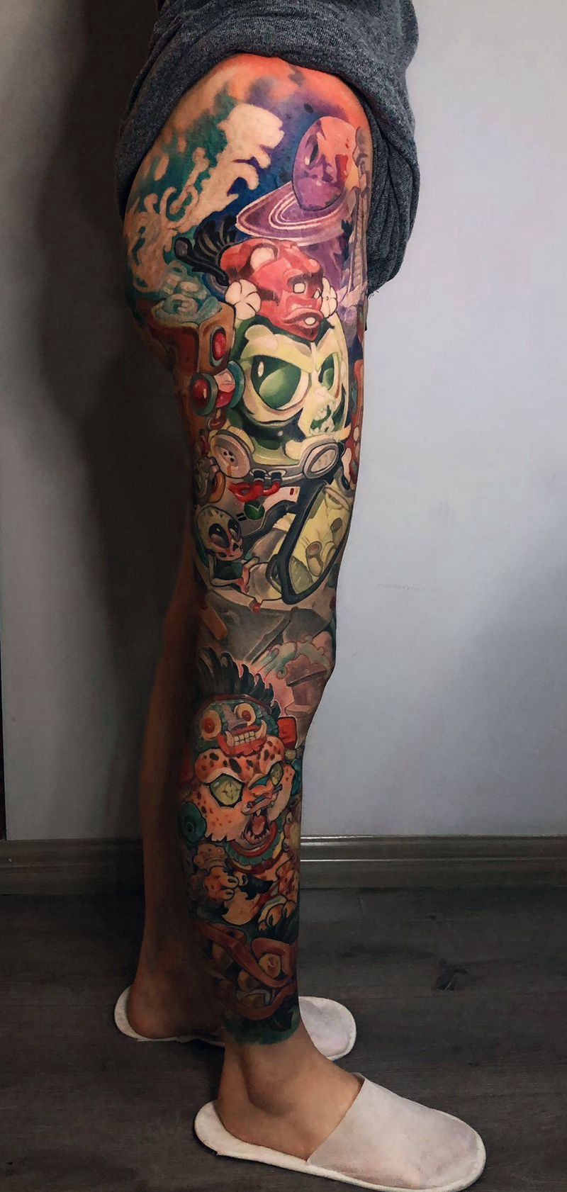 • T网红王老大花腿龙纹身图片_腿部新传统纹身图案